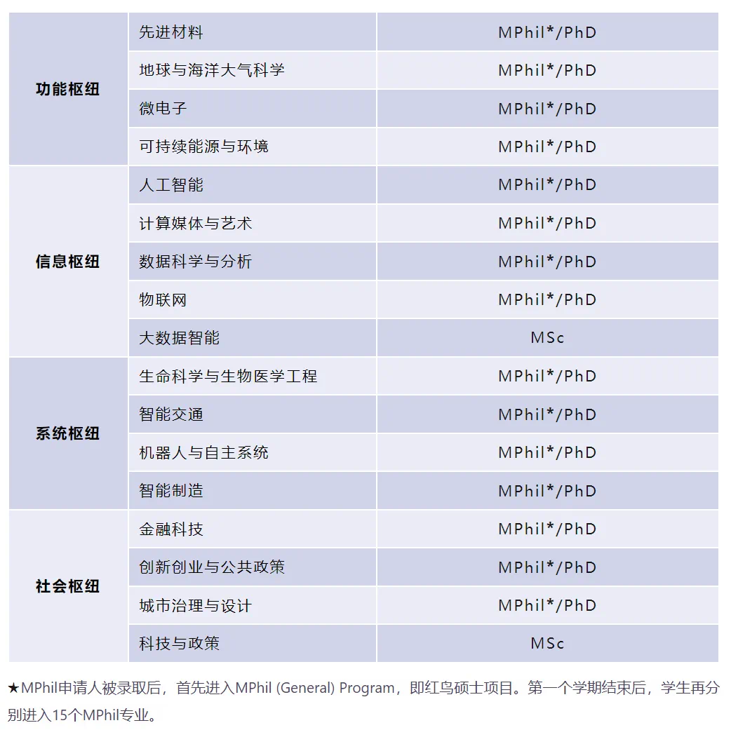 Ïã¸Û¿Æ¼¼´óѧ £¨¹ãÖÝ£©¿ªÉèÊÚ¿ÎÐÍ˶ʿ£¨TPg£©£¬Ñо¿ÐÍ˶ʿ£¨MPhil£©ÒÔ¼°²©Ê¿£¨PLD£©×¨Òµ£¬²¢ÒÀ¾Ý½ÌÓý²¿¹æ¶¨°ä·¢Ïã¸Û¿Æ¼¼´óѧ˶ʿѧλ»ò²©Ê¿Ñ§Î»¡£