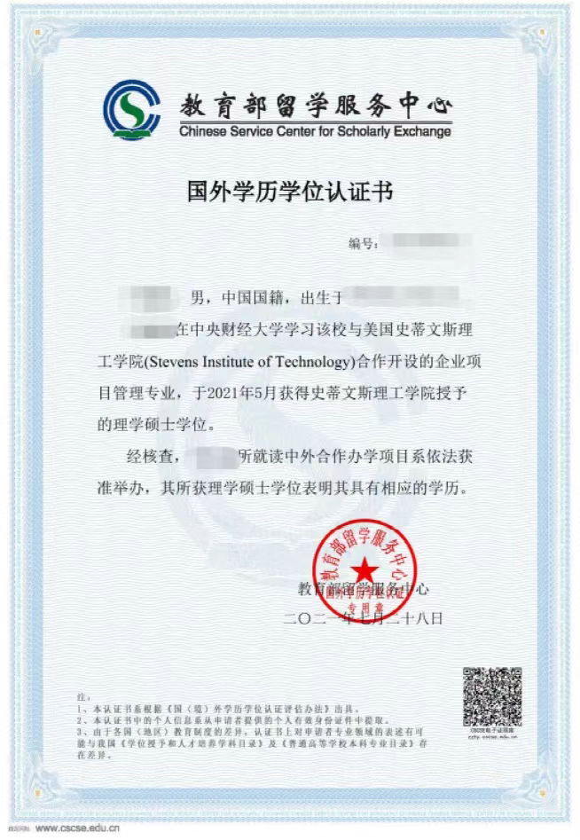 °´ÒªÇóÐÞÂúѧ·Öºó£¬ÓÉÃÀ¹úÊ·µÙÎÄ˹Àí¹¤Ñ§ÔºÊÚÓèÀíѧÆóÒµÏîÄ¿¹ÜÀíרҵ˶ʿѧ룬°ä·¢Ñ§Î»Ö¤Ê飬֤ÊéÓëÃÀ¹úУÄÚ°ä·¢µÄ˶ʿѧλ֤ÊéÍêÈ«Ïàͬ£¬¸Ãѧλ֤Êé¿ÉÔÚ½ÌÓý²¿Áôѧ·þÎñÖÐÐĽøÐÐѧÀúÈÏÖ¤¡£