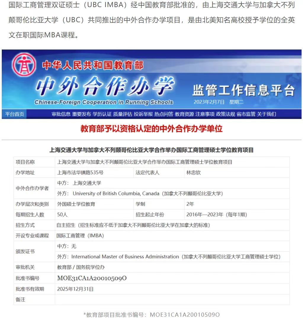 ѧԱ±ÏÒµ¿É»ñµÃUBC°ä·¢µÄ¹ú¼Ê¹¤É̹ÜÀí˶ʿ(International MBA)ѧλ֤Êé(µ¥Ö¤)¡£¸ÃÖ¤Êé¿ÉÔÚ½ÌÓý²¿Áôѧ·þÎñÖÐÐĽøÐÐѧÀúÈÏÖ¤£¬ÈÏÖ¤ºóµÄ·¨ÂÉЧÁ¦µÈͬÓÚ¹úÄÚÑо¿Éú“˫֤”¡£